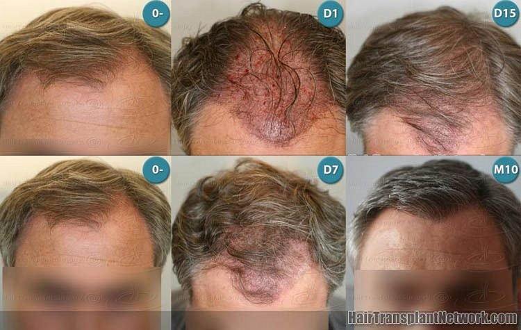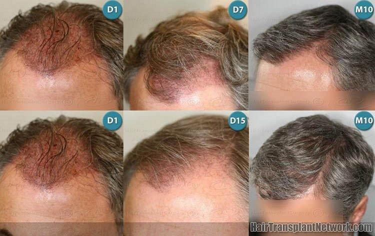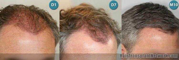 This hair restoration patient is 50 years old. He goal was to cover the frontal area first. He was asking for 2000 grafts, we were able to harvest 2358 grafts with 5180 hairs during his hair transplant session. He's using Finasteride and the hair loss is stabilized. The elasticity of his skin was very good so the scar is thin. The final result is very nice. (490 FU1, 1007 FU2, 567 FU3, 166 FU4, 19 FU5, 54 Double FU). He's using Finasteride and the hair loss is stabilized. The elasticity of his skin was very good so the scar is thin. The final result is very nice.